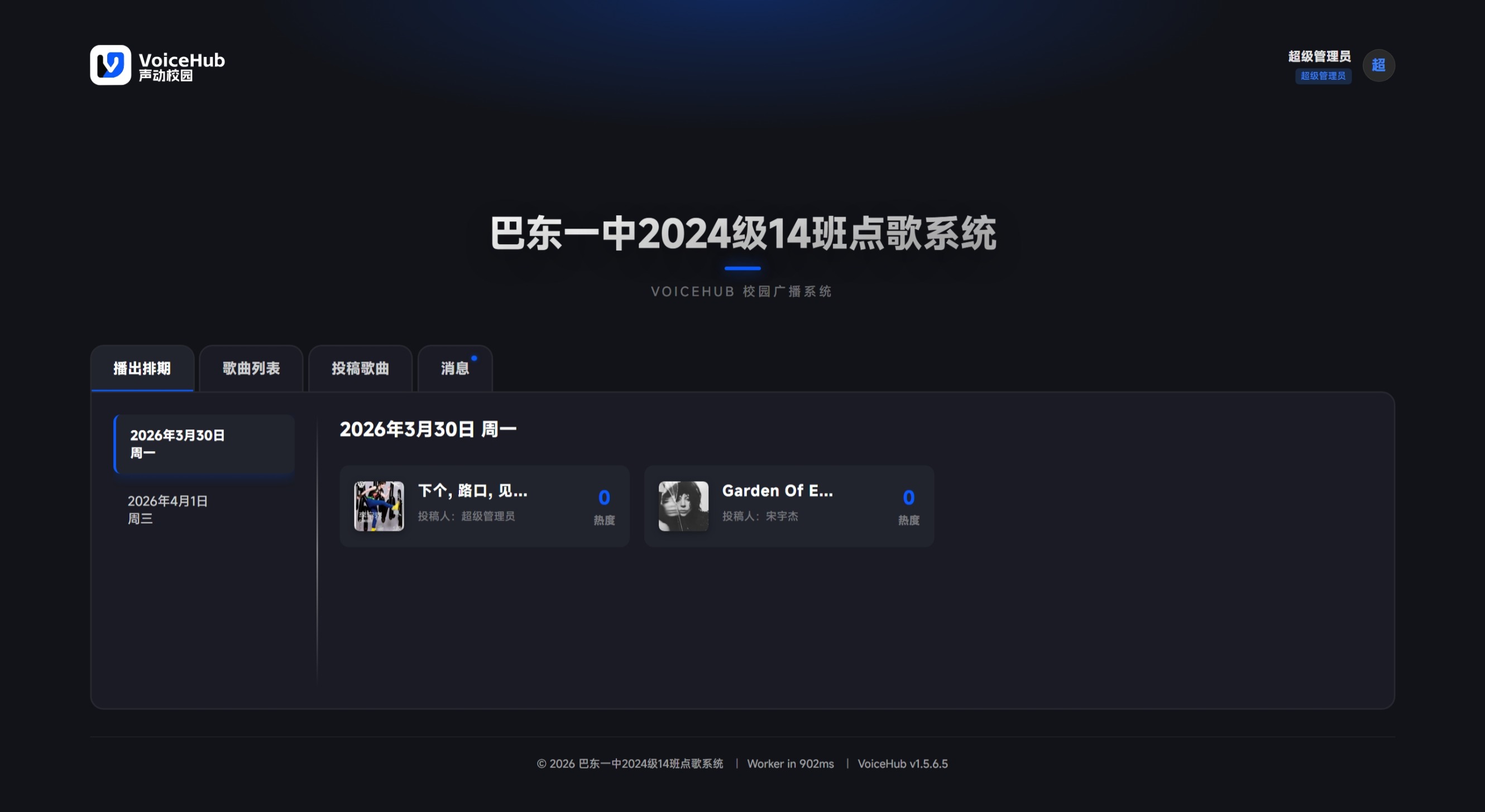 这是一个使用Nuxt 4全栈框架开发的现代化校园广播站点歌管理系统。系统提供完整的点歌、投票、排期管理、通知推送、数据分析、权限控制和数据库管理功能,支持多角色权限管理和灵活的系统配置。