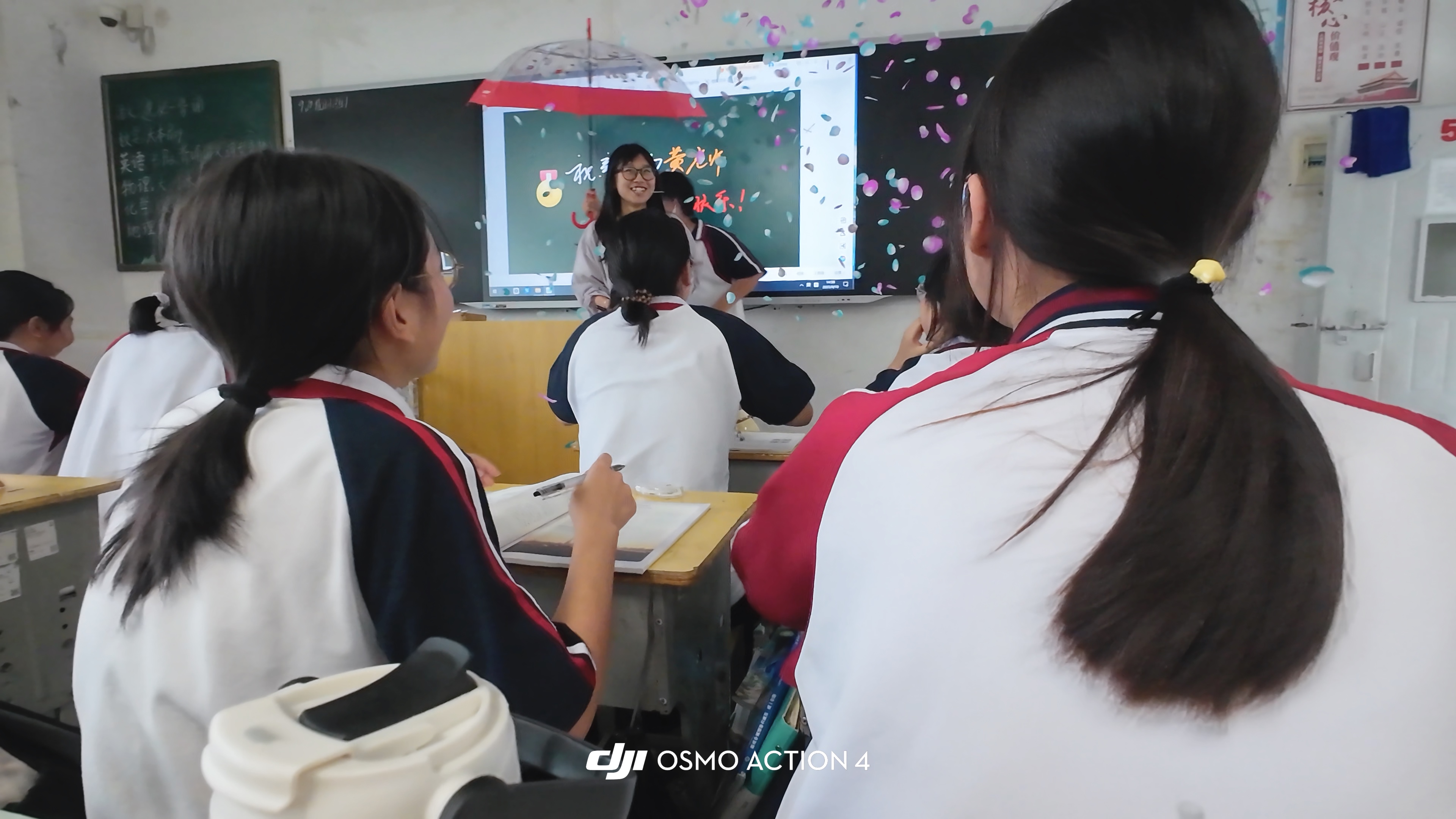 早餐时间对白板,教室后黑板进行了简单、快速装饰,确保活动的保密性